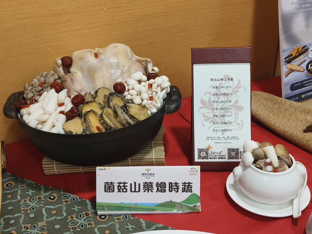 「福容大飯店-福隆店」自10月1日至12月31日推出新北山藥山海宴及一泊二食的住房專案,包含山藥什錦拼、山藥鮮蝦球等多道山藥料理,並於福粵樓結合東北角特產貢寮鮑推出產地限定的單點湯品-山藥鮑魚養生雞湯。「台北凱達大飯店」自10月1日至11月30日,於百宴自助餐廳推出限定主題,餐檯加碼五道山藥料理,包括山藥枸杞紅棗排骨湯盅、金沙山藥等佳餚。此外,凡於10月1日至10月22日期間至百宴用餐之賓客,於FB或Threads拍照打卡並截圖至飯店FB指定貼文留言,即有機會免費參加10月25日「山藥小旅行」一日遊行程。