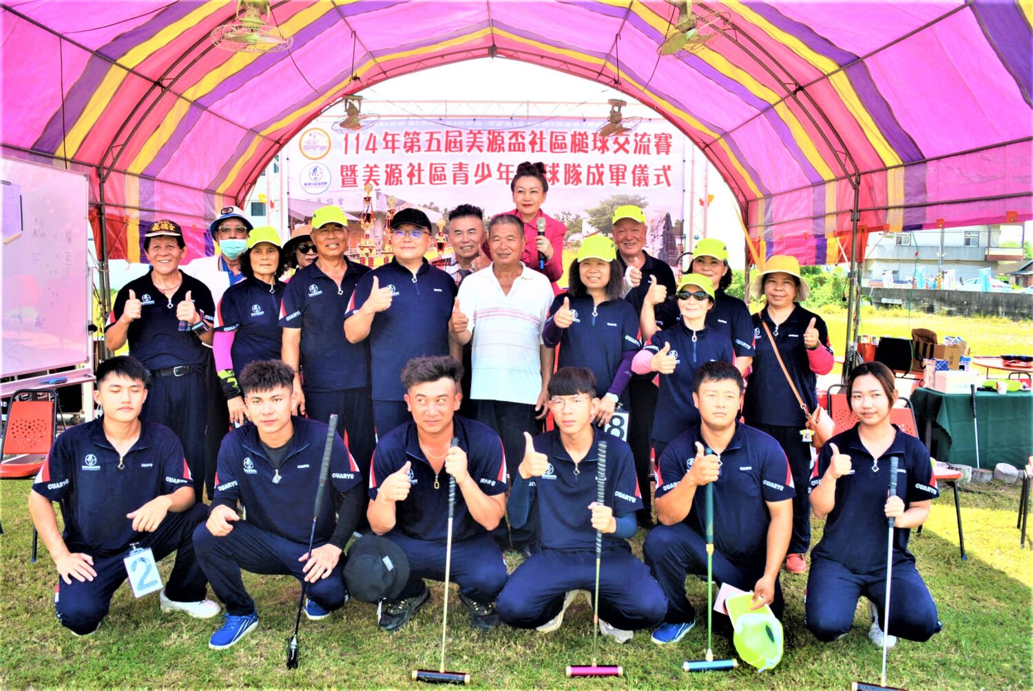 〔記者侯姵伃、郭政隆/嘉義縣報導〕由嘉義縣政府、嘉義縣水上鄉公所及嘉義縣槌球協會指導,美源社區發展協會主辦的「第五屆美源盃社區槌球交流賽」暨「美源社區青少年槌球隊成軍授旗儀式」,9/27日於水上鄉美源社區熱鬧舉辦,邀集縣內10支社區槌球代表隊、近百名槌球愛好者齊聚一堂,活動不僅展現社區凝聚力,更體現世代融合的核心價值。