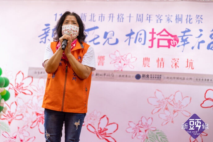 今年深坑客家桐花祭結合深農市集、不桐食光DIY美食手作體驗、客家歌謠競賽、桐花祭寫生競賽及桐花步道生態導覽等活動,其中手作美食體驗及生態導覽報名上線秒殺,現場民眾更是一早就前往服務台排隊等待候補機會。客家歌謠競賽各方好手摩拳霍霍,經過一上午比拚,參賽者中的小一學童演藝令人如癡如醉,寫生比賽也有從基隆遠道而來的參賽者,其中李媽媽表示:深坑是個適合讓孩子放電的好地方,有老街和古蹟,又有美麗的生態公園,寫生競賽結束後還要帶孩子到老街走走,有吃有玩有學習,是家長喜歡帶孩子來的景點。▲深坑區區長黃美華表示,深坑是藝術人文薈萃、歷史悠久的好地方。(圖/深坑區公所提供)