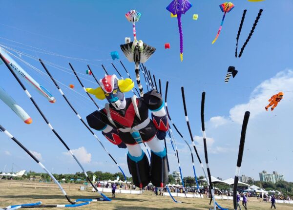 今年活動邀請法國、紐西蘭、義大利、新加坡等國際團隊與台灣北中南優秀隊伍同場競演,超過百位國內外風箏好手齊聚新竹,帶來近千隻風箏同場飛翔,壯闊景象令人讚嘆。其中,法國隊帶來15米「星際迷航企業號」星艦,義大利隊則以25米「外星人」巨型風箏首次現身新竹,雙方分別領軍「太空聯盟」與「外星軍團」,在天空展開銀河對決,氣勢磅礡。紐西蘭團隊則以大型太空人陣列與「星際賽車」風箏震撼登場,宛如太空艦隊降臨港灣;新加坡團隊則以魚尾獅群風箏增添文化交流色彩,為國際盛典注入新亮點。