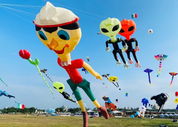 除了仰望天空的壯闊展演,地面展區同樣吸睛。會場設置直徑3米的「太空飛碟」,以及「夜光月球」風動地景藝術,並展出來自美國設計師的「小怪物」藝術風箏。竹市吉祥物「皮卡」也將化身太空人,駐守在飛碟旁,成為大小朋友最愛的合影地標。夜幕降臨後,還有10月4日、5日晚間限定的「夜光風箏秀」,結合發光骷髏、幻彩外星生物、夜行太空人與會發光的小魚尾獅,共同點亮夜空,營造宛如「宇宙燈會」般的奇幻饗宴。
