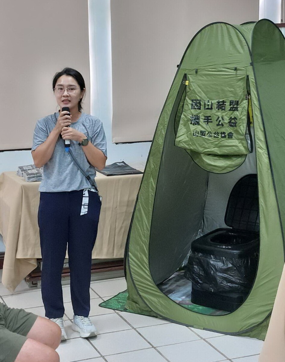 ▲山盟公益協會說明如何使用排遺攜出設備新竹分署呼籲遊客或團體,規劃在霞喀羅國家步道沿線宿營者,應共同遵守無痕山林原則,不得擅自於森林區域內引火及堆積廢棄物或排放汙染物;另為避免廚餘垃圾置放野地造成環境衝擊及野生動物(如黑熊)的翻食侵擾,垃圾廚餘皆請自行攜帶下山。也提醒,進行山林登山遊憩活動,務必遵守遇野生動物應注意事項(不接觸、不侵擾、不餵養)及宿營場地駐地人員的管理。步道的自然資源和野生動物棲息空間需要大家共同保護。