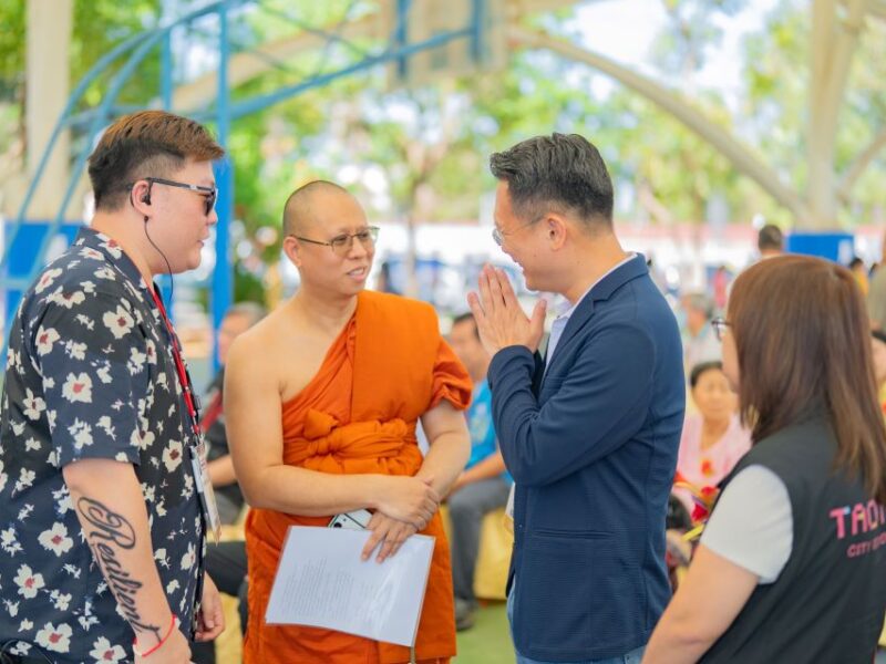 【News586/記者彭慧婉報導】「泰國結夏安居功德文化節」今(12)日上午在中壢區龍岡大操場天幕籃球場舉辦,桃園市副市長蘇俊賓表示,泰國朋友們在桃園及臺灣各地的貢獻,大家都有目共睹。尤其日前花蓮馬太鞍地區發生災情,許多移工朋友自發組隊,開著小山貓、拿著鏟子前往花蓮協助救災,其中也有許多泰國朋友的身影。感謝大家以行動展現愛與善意,把臺灣當成自己的家人與故鄉,持續在這片土地上傳遞善良的循環。市議員彭俊豪、魏筠、市府婦幼局長杜慈容、中壢區長李日強、泰國經濟貿易辦事處助理代表邱歐姆等均一同出席活動。