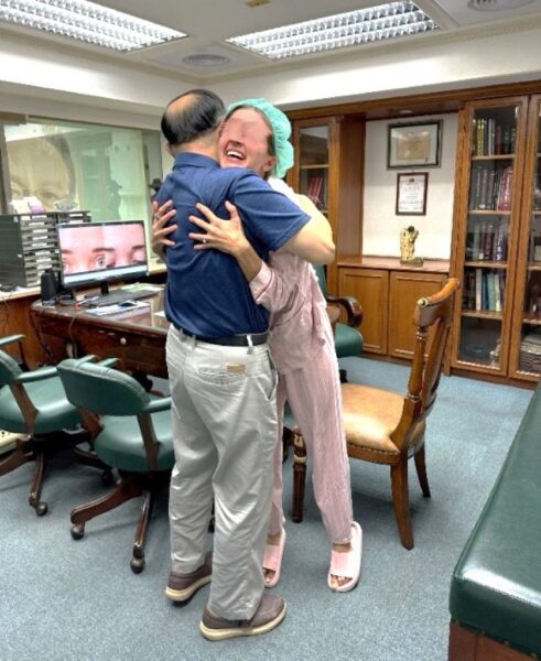 就在她於美國四處求醫無門之際,2024年7月她抱著僅存的希望在Google全球海搜,竟查到台灣有專治白疤的曹賜斌醫師,其自創的《白疤顏色再生術》可有效醫治白疤,並在高雄成立全球唯一的國際白疤中心。隨後她再上網查閱曹醫師刊登於國際一流的美國美容外科醫學會學術期刊(ASJ) ,共發表兩篇白疤治療論文,因此信心大增,去年9月即自美專程來台尋求醫治。