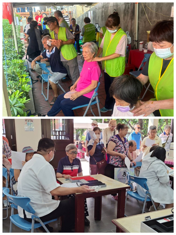 為讓長者煥發自信風采,臺中市女子美容商業同業公會也號召25位專業理髮師,現場提供免費剪髮與造型服務。中華先天能量創意養生學會與經絡班師生、及臺中市盲人福利協進會,更派出專業按摩師熱情參與,提供肩頸紓壓按摩服務。