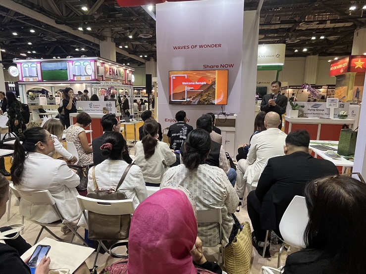 展會期間,臺灣館舉辦一場團體簡報(Group Appointment),透過ITB Asia官方平台邀約特定高潛力買主參與,包括來自歐洲及東南亞的旅行社、跨國企業活動策劃部門、國際飯店集團及專業旅遊媒體代表。簡報聚焦臺灣會展產業優勢,包含完善的場館設施、便利的國際交通、多元的補助措施與高效率的專業服務,並結合「親山、親海、樂環島」品牌形象,引發買主高度關注。