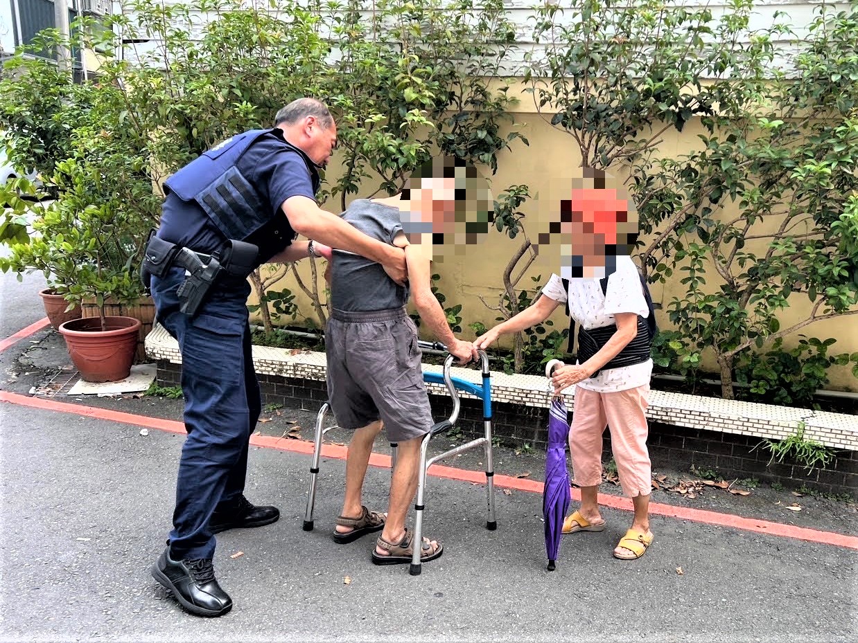 員警第一時間先關心檢視林翁有無受傷,確認意識清楚後將其小心攙扶起身,再攙扶到路旁安全處坐下休息,並確認林翁身體狀況已無大礙後,詢問是否送醫救治,林翁表示不用送醫,且住家就前方不遠處,員警得知便細心攙扶林翁緩步返家,並一路護送至位於民生南路段巷內的住處避免再生意外,直到安全進門才放心離去,當抵達家門時,夫妻倆平安返家,對警方即時伸援深表感激,頻頻地向警方鞠躬致謝。