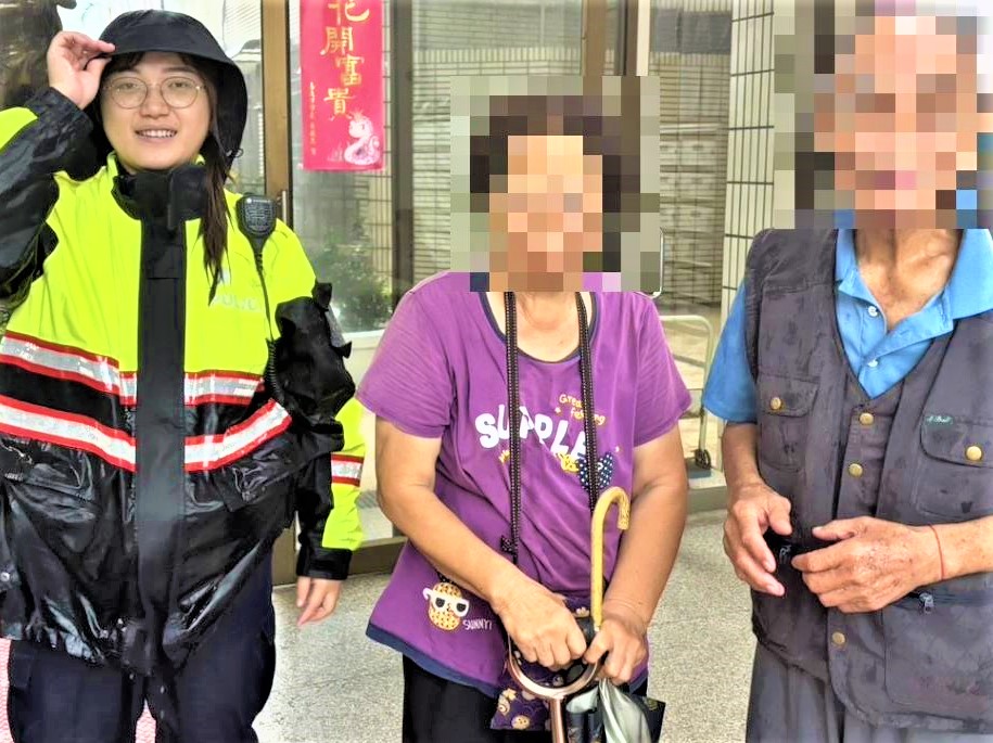 經了解,該名楊姓老翁平時與年邁妻子同住,當日下午獨自徒步外出運動,怎料越走越遠,由於楊翁年歲已高雙腳無力,走至垂楊路與和平路上的捐血站外,便無力繼續行走,此時天空降下滂沱大雨,只得借捐血站的屋簷躲雨,一旁民眾上前關心,然而楊翁患有失智症狀,民眾便打電話報案請求警方協助。