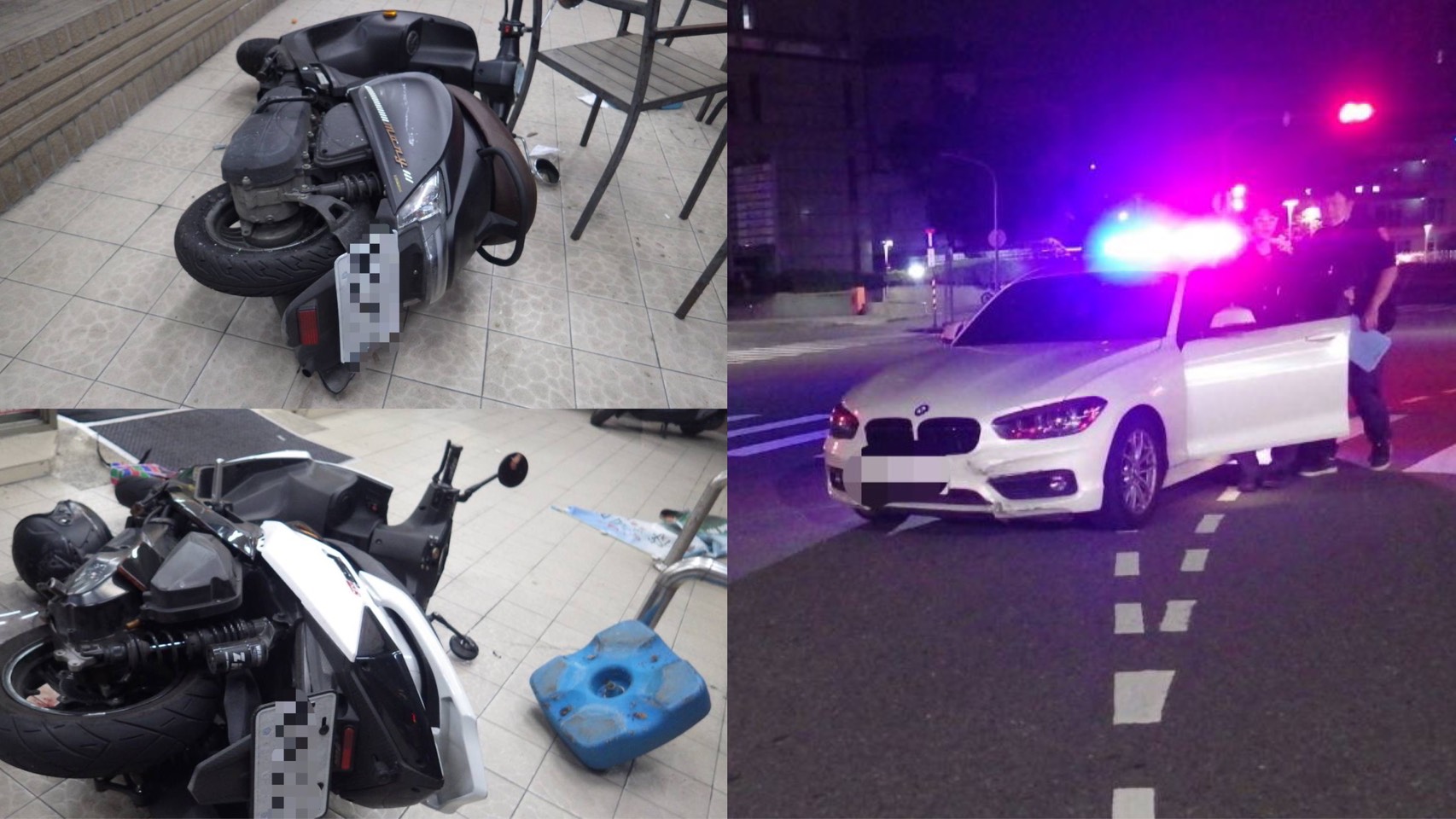 高雄三民建國二路與和平一路口,昨(22)日晚間10時許傳出一起車禍事故,一輛自小客車與機車發生擦撞後,機車再波及停放於超商前的機車,導致一名年輕男騎士受傷,他整個人撞上店家的水泥車阻,當場慘叫濺血,緊急送醫,所幸無生命危險。