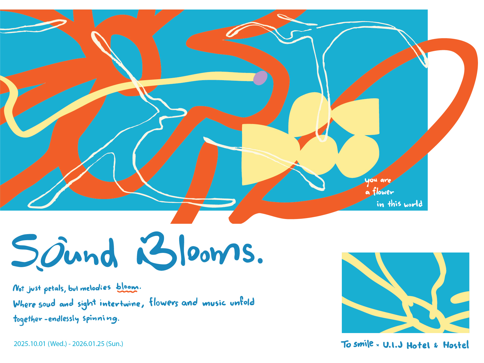 藝術家To smile以花朵圖騰貫穿作品,延伸出跨城市的對話。展覽並串連曼谷與台南的音樂據點,形塑出一張名為「Sound Space」的文化聲響地圖,並配合房客優惠、線上行事曆與合作展演,將藝術行動轉化為實際的城市文化經濟網絡。這樣的策展,不僅展示「藝術之花」,更呈現「制度之根」——當藝術進入城市運作,文化不再只是活動,而是一種能自我修復、持續綻放的地方韌性。