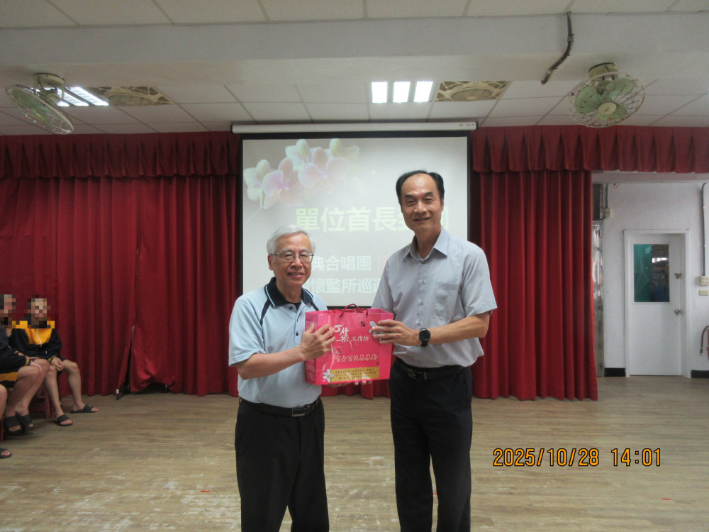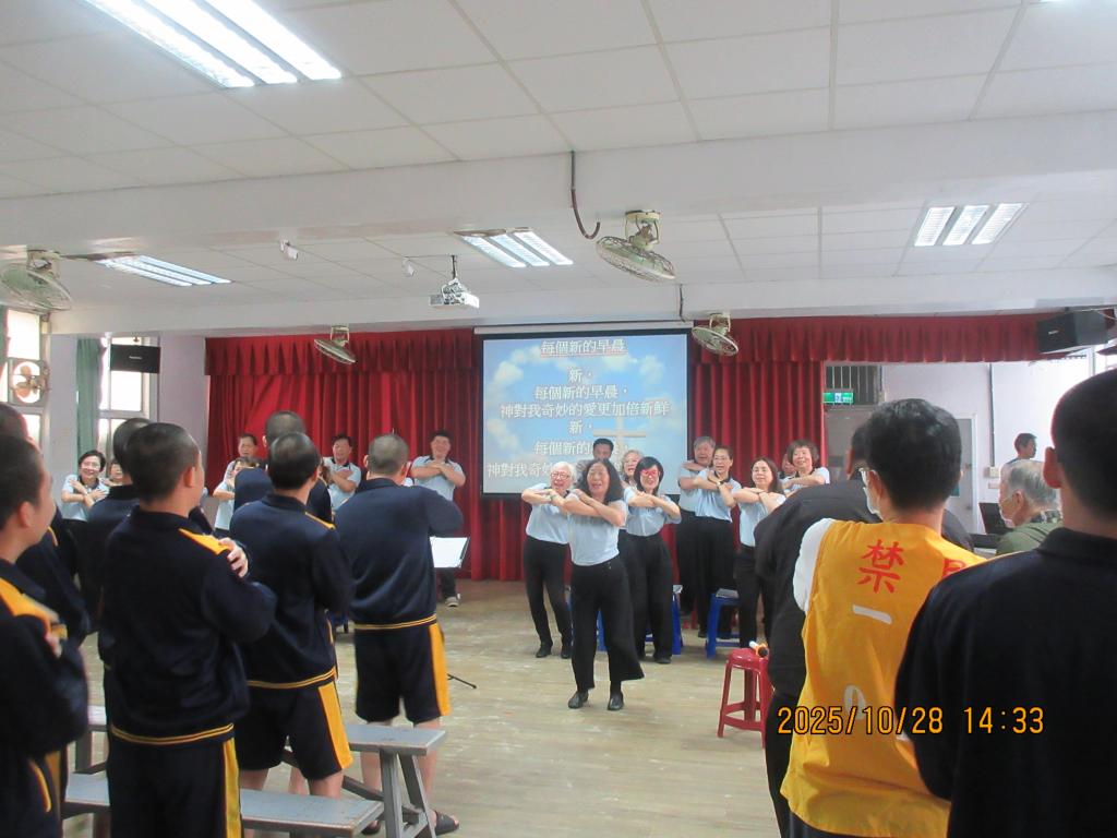 為深化收容人心靈關懷與宗教輔導工作,「華人加拿大恩典合唱團短宣隊」10月28日前往新竹看守所舉辦音樂關懷活動。由團牧柯約翰先生率領共29位成員組成的詩班,以動人的詩歌與真摯的見證,為收容人及工作人員帶來溫暖與鼓勵。