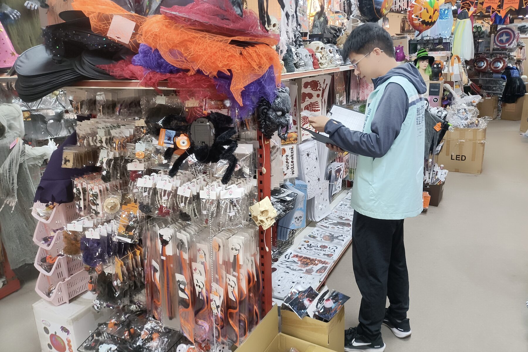 隨著萬聖節腳步接近,各家業者紛紛推出相關萬聖節應景商品供民眾選購。為使民眾安心購買,新北市政府經濟發展局特別啟動萬聖節商品專案抽查,針對轄內商家共抽查400件商品,其中80件標示不合格,已要求立即下架並限期改善。經發局也提醒消費者,購買萬聖節應景商品時除了比較外觀和價格,更要確認標示是否完整,才能安心慶祝萬聖節。