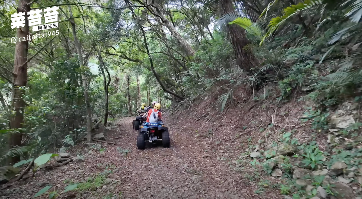 菜苔苔一家人在泰雅部落體驗越野車,穿梭山林間感受谷關原鄉的自然魅力。(圖/翻攝自菜苔苔與菜生生Youtube)