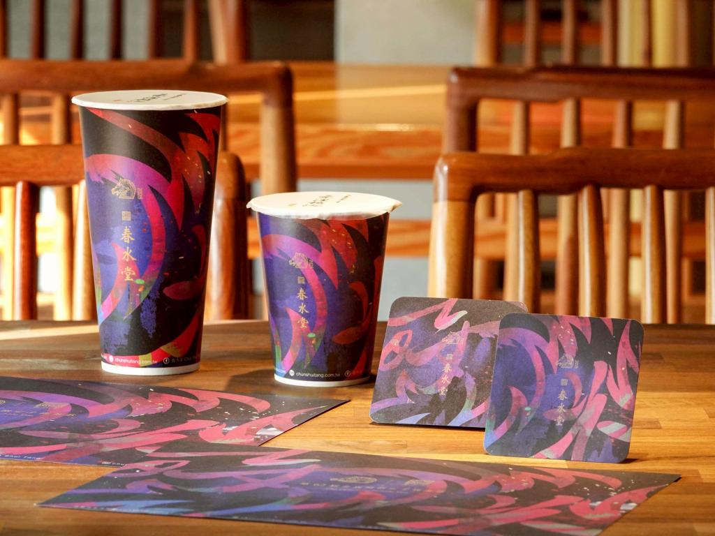 圖說:春水堂聯名金馬62主題「最好的時光」為主視覺設計,將紙杯、杯墊、餐墊紙等期間限定換。(春水堂提供)