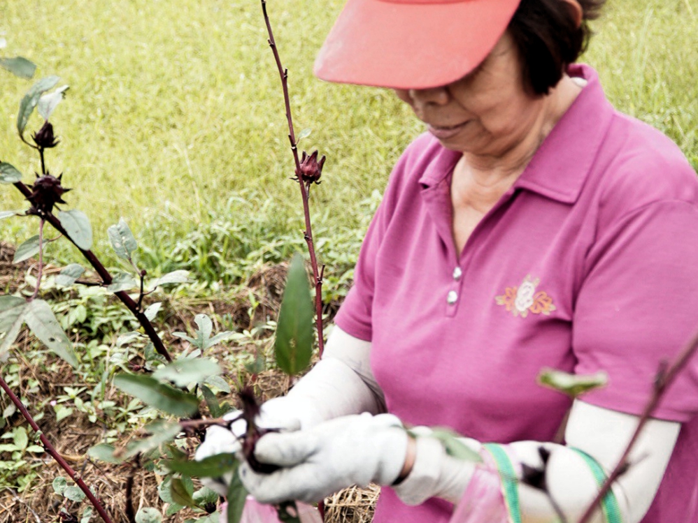 新竹縣農會推廣部主任劉玟君表示,拙茁家園以自然農法栽種洛神花,栽培面積廣、採收期短,需與時間賽跑。縣農會已連續三年號召各地農會人員投入採收行動,今年共採收727斤成熟洛神花萼,並協助去籽約 200斤。採收後的洛神花將由「竹東阿金姐工作坊」收購,製作成 洛神花蜜餞、果醬與果汁,再以成本價回饋拙茁家園販售,為園區增添穩定的收入來源。