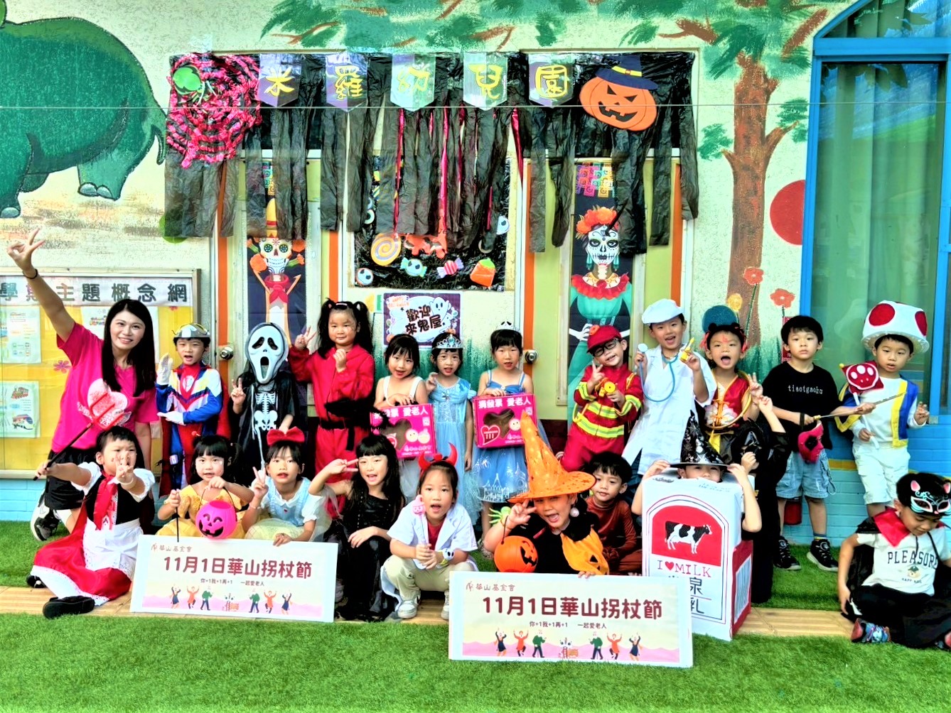 華山基金會成立26年來,如同長輩身旁可靠的拐杖,陪伴全台失能、失智、失依三失長者走過無數孤單的日子,米羅幼兒園長期認同華山理念,今年已是第6年與太保天使站攜手舉辦感恩茶會;活動當天特別安排111位大小朋友快閃齊跳「拐杖舞」,以傘替杖,共舞「拐杖傘」,象徵為長輩撐起最堅強的守護傘,同時推廣華山愛心發票碼「111」,邀請社會大眾一起響應愛心行動,現場歡樂無比,快閃跳「拐杖舞」後,大小朋友也拿著發票箱,跟義工一起出發掃街募發票,對著愛心捐贈的人,感謝一起響應活動。