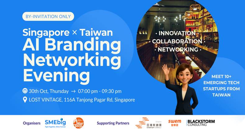 透過此次活動,智商戰(SMEbig)預計將能夠結合臺灣企業獨有的創新能量、技術優勢與新加坡身為區域樞紐的國際商務中介優勢,助力中小企業在全球市場中拓展更廣闊的發展空間。活動邀請來自臺灣與新加坡的產業專家、AI 新創團隊、品牌經營者及投資人參與。透過專題分享、案例交流及現場互動,與會者能夠深入了解AI技術在品牌與商業領域的最新應用,探索跨境合作與市場拓展機會,並可透過亞洲第一個 SME AI Branding 加速器「智商戰(SMEbig)」平臺,促進雙方企業建立長期合作關係,推動創新技術落地與商業模式升級!