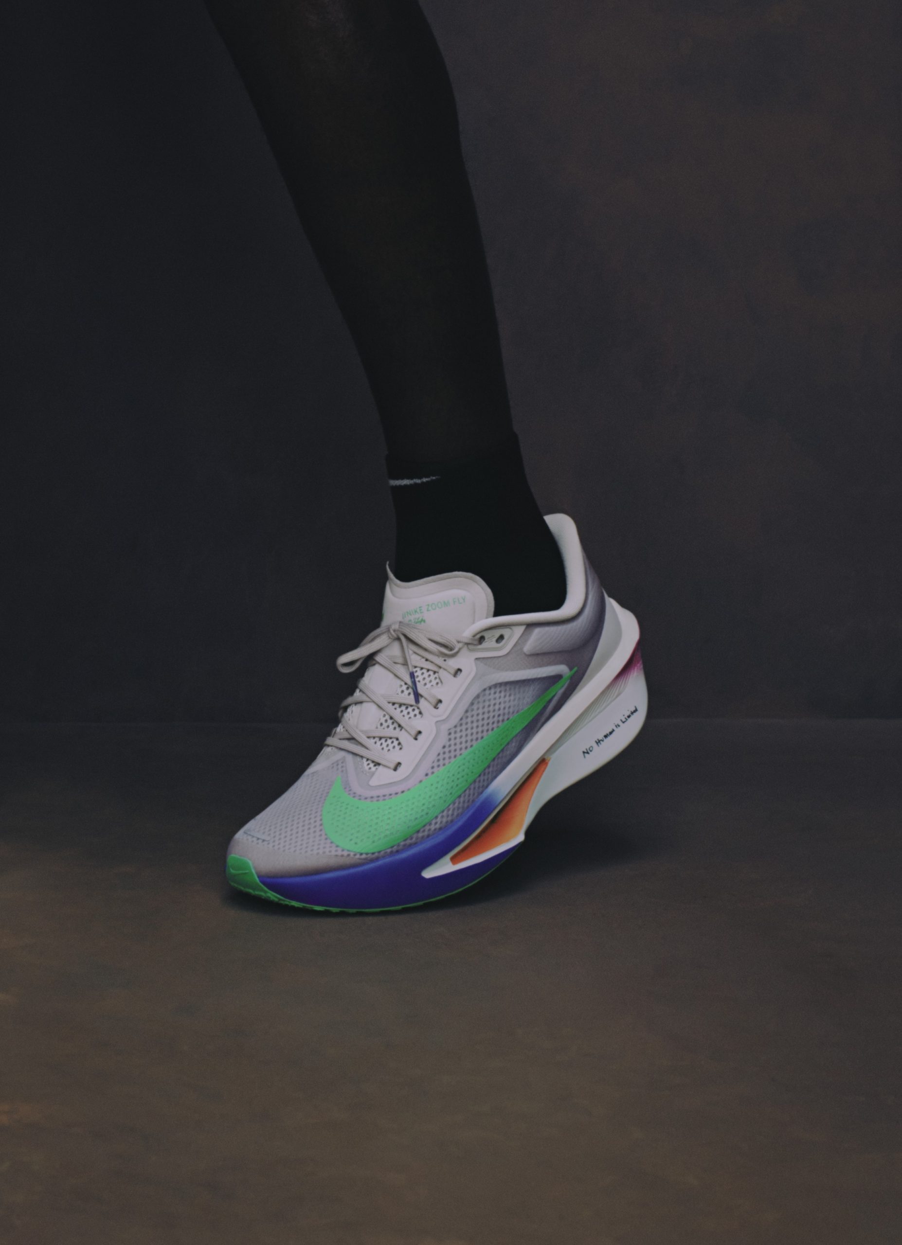配色靈感源自他的旅程。從肯亞的紅土,到家人熱愛跑步所帶來的鮮明與喜悅,這些色彩講述了他的故事。Shock Green、Persian Violet、Fire Pink與Bright Ceramic將自然的沉穩與奔跑的能量融合,呈現出充滿層次感與生命力的視覺語言,象徵持續前行的精神。