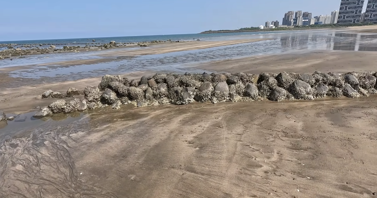 岸上也有一些石滬殘存。(圖/翻攝自Tony Huang YouTube)