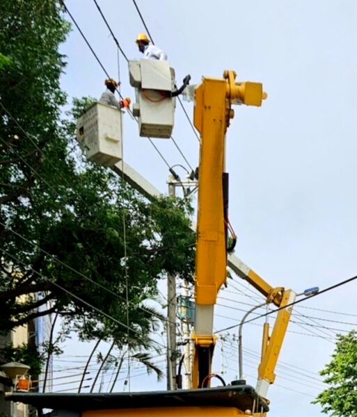 ▲鳳凰颱風來勢洶洶,台電新竹區處全力戒備預防性修剪樹竹,同時並籲請民眾多利用網路通報查詢停復電資訊。(圖/台電新竹區處提供)