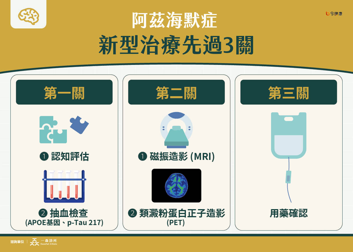 並非所有阿茲海默症患者都適合使用新藥。王培寧醫師指出,治療前必須通過三道關卡: