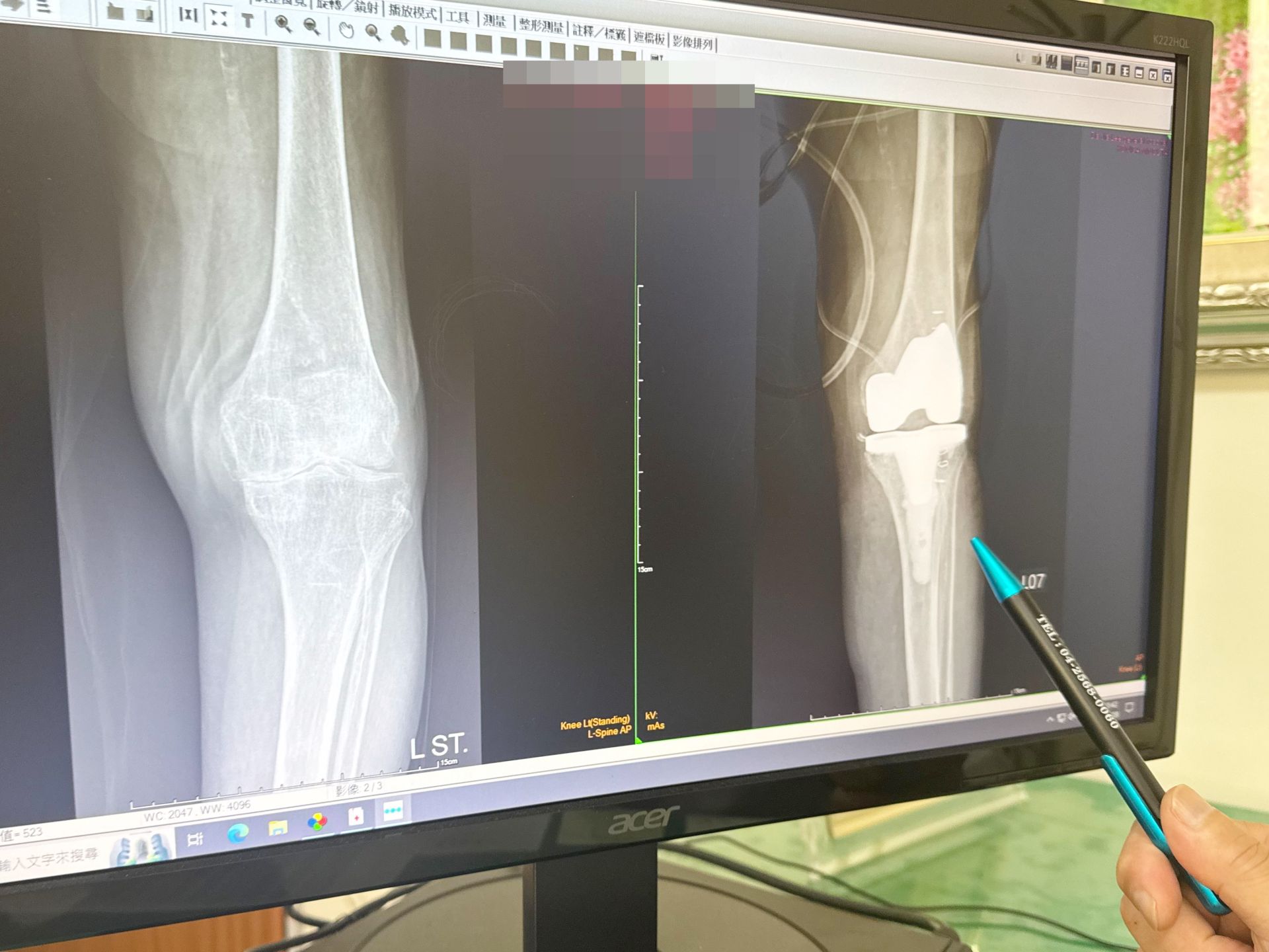 大甲李綜合醫院副院長、骨科主治醫師王芳英表示,阿嬤在兒子的陪同下前來門診,經過檢查後,確認阿嬤罹患第四期退化性關節炎,建議要手術替換人工關節才能改善生活的不方便,隔了一個禮拜,阿嬤自己決定開刀,兒子也同意讓母親手術置換人工膝關節。