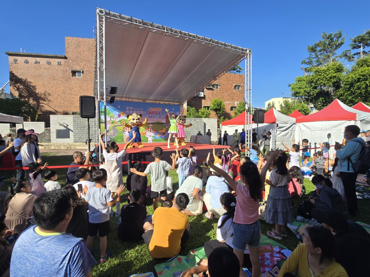 ▲YOYO家族KIWI姐姐、石虎家族熱力表演,小朋友們專注地跟著唱唱跳跳。(記者廖美雅拍攝)新聞局指出,今日活動除了精彩的舞台表演,周邊互動攤位也人潮滿滿,鼓勵大家透過闖關認識交通安全常識;此外,石虎家族也有抽獎拿好康活動。