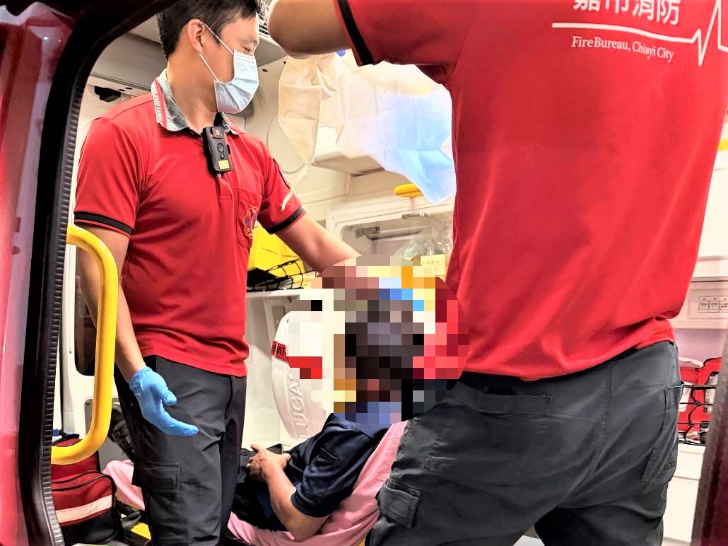 〔News586/記者侯姵伃嘉義市報導〕嘉義市政府警察局第一分局北鎮派出所警員許宸皓、黃鉑鈜等2員日前擔服巡邏勤務時,接獲民眾報案稱,在嘉義市西區北港路段某貨運公司,有員工因工作時不慎摔落地面有受傷,情況危急請警方到場協助,員警急赴到場後與消防救護人員,合力救護送往醫院救治。