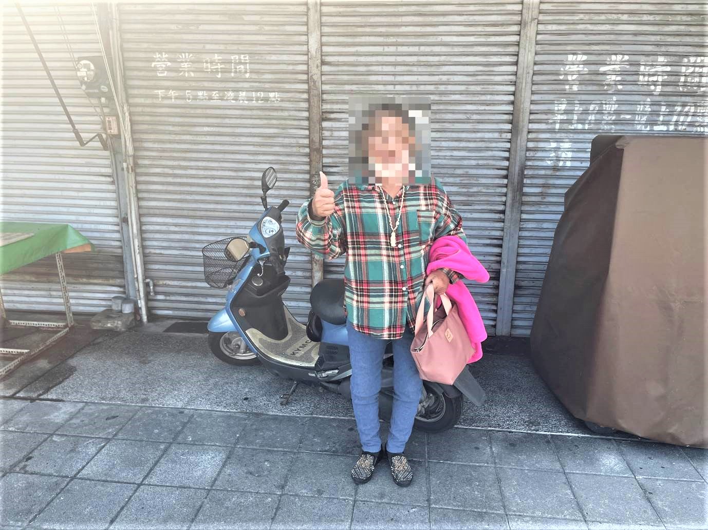 正當李員決定請吳婦返回派出所,調閱路口監視器資料,確認行經方向時,剛好經過新民路與康樂街口,竟然在加油站對面發現吳婦的機車,便立刻撥打電話告知吳婦尋獲機車的好消息,請到現場確認,吳婦到場後看到自己的機車喜出望外,立刻露出開心的笑容,對自己的疏忽忘記停放位置直呼抱歉,也不禁豎起大拇指為李員認真執行勤務的態度比個讚,感謝警方協助找尋到不見的機車,離去前頻頻道謝。