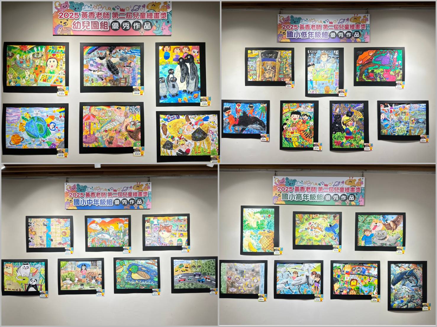 ▲「2025黃香老師第二屆兒童繪畫獎」四大組別的優秀作品同步展出,包括幼兒園組、國小低年級組、國小中年級組與國小高年級組。( 圖 / 主辦單位提供 )