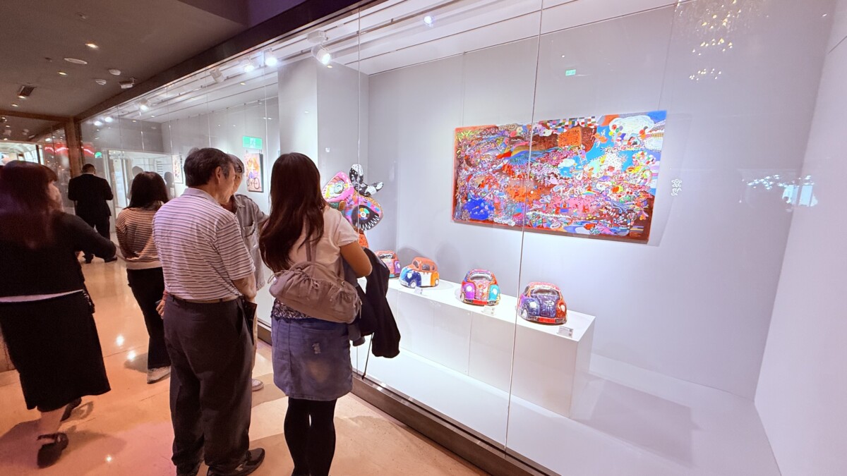 ▲愚魚「無心柳.有心色」個展。中友百貨企劃處經理簡聰政表示暨2014年『也無風雨也無晴-愚魚的藝饗世界』之後,睽違11年,再度邀請到藝術家愚魚老師展出,他的創作是一種「隨興」的態度,愚魚老師說:「不想也罷,感覺自來」。用這樣的創作觀念態度一路走來始終如一誠屬不易。中友時尚藝廊同時規劃藝術打卡牆,民眾可一起來跟藝術家共同體驗創作的樂趣。