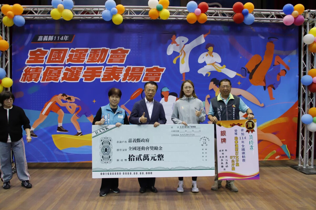 【記者 吳瑞興/嘉義縣 報導】嘉義縣在114年全國運動會奪下2金4銀7銅佳績,縣府頒發301萬運動獎勵金,鼓勵他們勇往直前奪牌的決心,縣長翁章梁1日晚間在水上國小親自頒獎表揚嘉縣健兒。