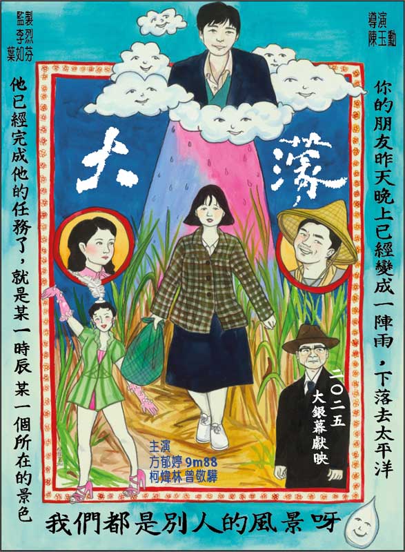片方今(3)日再度釋出驚喜,公開由「仙女藝術家」倪瑞宏繪製的手繪插畫海報,畫面以濃厚色彩描繪出電影角色的情感與命運,將四零年代小人物的故事轉化為強烈的視覺語言。倪瑞宏透露,創作靈感來自電影中曾敬驊飾演的哥哥育雲會畫畫的設定,構圖參考片中阿雲的作品,讓哥哥化作雲朵漂浮在妹妹阿月頭頂,象徵他以力量支撐著妹妹走出甘蔗田完成冒險。倪瑞宏特別提到,自己最喜歡片尾由9m88飾演的姊姊阿霞講述哥哥故事的橋段,認為這段敘事貫穿整部電影,情感深刻且動人。