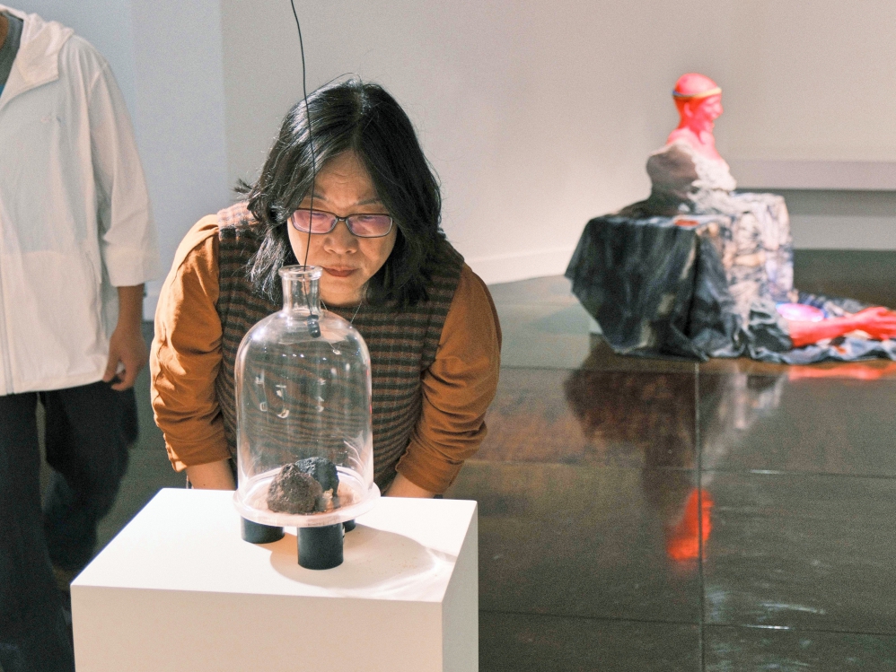 ▲以「日常縫隙中的感知震動」為策展主題,陽明交大應用藝術研究所自12月4日至12月26日在陽明交大藝文空間舉辦年度師生聯展「微幅震動」。圖係陽明交大人藝社院院長賴雯淑與郎興晨作品微小的共鳴腔。(圖/陽明交大藝文中心提供)
