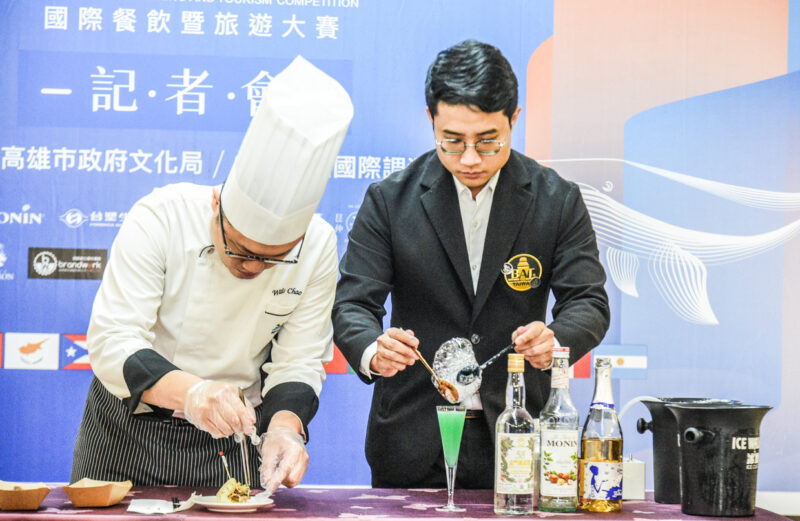 第24屆金爵獎設立20個競賽項目,內容涵蓋調飲創作、服務美學、餐飲創意設計與文化導覽等多元面向。競賽中包括國際飲品技藝類的調酒與無酒精飲品創作,餐食與甜點藝術類的台塑經典割包料理、中餐水花呈盤、糖霜餅乾及果醬畫盤製作,以及專業服務技術類的托盤服務與口布摺疊。此外,也規劃文化導覽與體驗設計類的旅遊導覽競賽,完整展現餐旅產業的跨領域專業能力。今年參賽對象橫跨全台32所高中職、25所大專院校及餐旅相關從業者,形成兼具教育價值與國際實務能力的專業選手陣容。