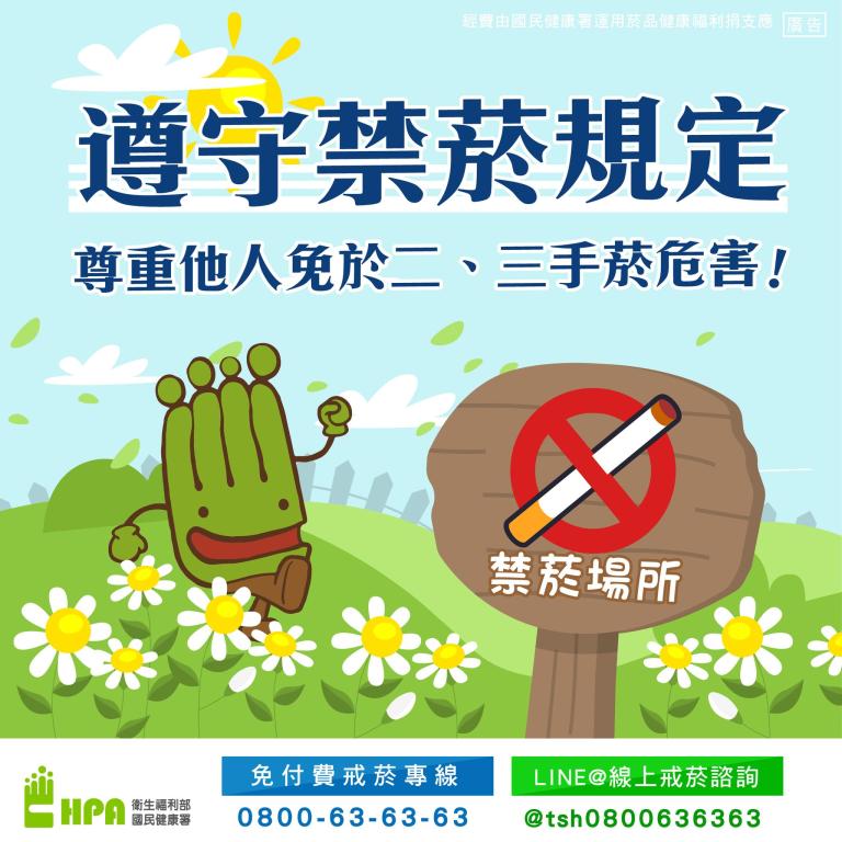 衛生局表示,為落實維護戶外清新無菸環境,請有吸菸朋友們務必遵守禁菸場所不吸菸,避免為了滿足自己一時需求,讓其他人遭受二手菸危害;請禁菸場所管理單位及不吸菸民眾,一起共同柔性勸導未遵守規定之吸菸民眾,相信在大家努力下,逐步營造無菸環境,維護縣民身心健康,盡而達成無菸友善環境健康金門。