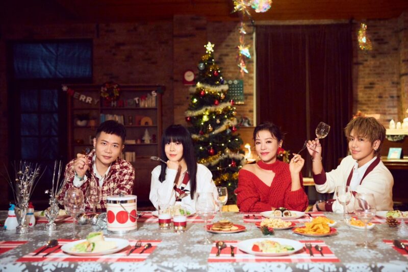 圖/相信音樂《Ho Ho Ho!》聖誕特輯夢幻陣容──Energy、鼓鼓呂思緯、蕭秉治以節慶紅白系造型展現冬日活力。