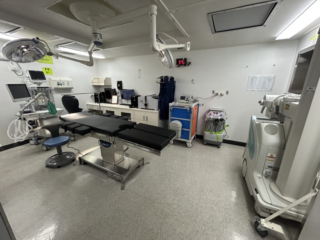 玉山艦一大亮點在於其醫療艙間,規模比照野戰醫院,具備完整醫療設施,包含診療室、手術室、牙科室、恢復室與病房,能在海上提供全方位醫療服務。診療室配備胃鏡、腹部超音波掃描機、心電圖機、耳鼻喉科治療儀及尿液分析儀,可進行內科與耳鼻喉科診斷;手術室則設有電動手術台、麻醉機、電燒灼器、無影燈、急救設備、移動式X光機與電擊器,不僅能維持傷患生命徵象,亦可執行一般外科及骨科手術;牙科室則提供洗牙、齲齒填補及假牙黏合等服務,並配有逆滲透淨水器與空壓設備。這些設施使玉山艦在必要時能化身「海上野戰醫院」,支援大規模人道救援。