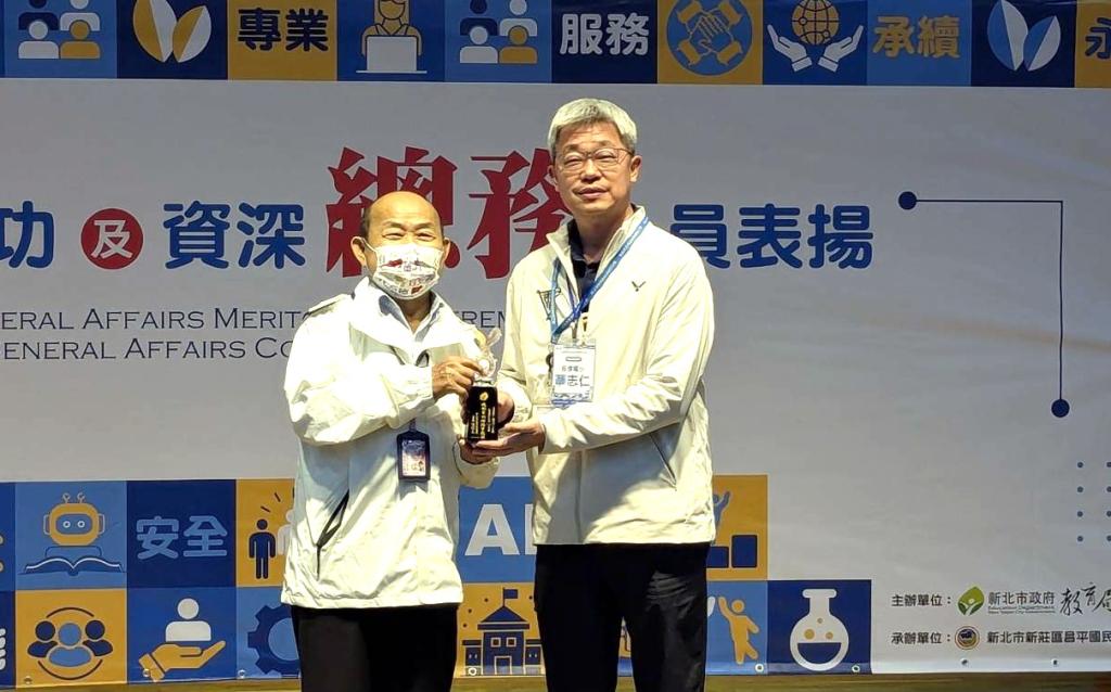 今年總務有功人員特別增設「特殊貢獻獎」,由板橋國小華志仁校長榮獲殊榮。華校長長期協助教育局推動重大建設與採購案,總金額逾百億元,推動「班班有冷氣」及「校園能源管理系統(EMS)」等全國指標計畫,串接「校園通APP」實現能源智慧監測,成果榮登全國之冠;並統籌各校教室觸屏採購,展現行政統籌力與執行力,成為新北校長群中具代表性的實務典範。