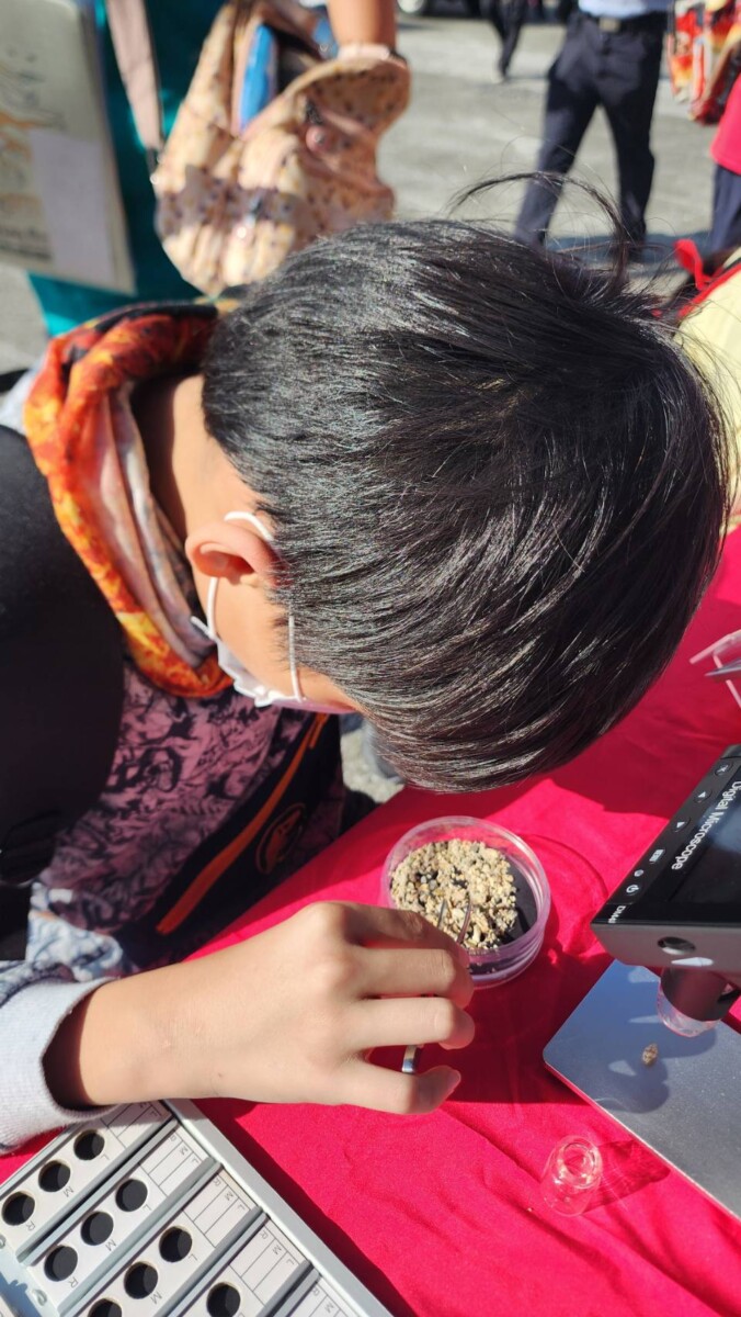 活動現場,小朋友與家長透過顯微鏡及鑷子細細挑選,淺盤中的每一抔砂都可能發現驚喜。許多參與者驚呼:「原來這麼看似不起眼的淤砂中竟然有這麼美的小小貝殼!」海科館教育人員也藉此說明海洋環境的複雜性與生命的韌性,讓參與者在遊戲中自然理解海洋生態的多樣性,並透過實體接觸加深對海洋的了解。