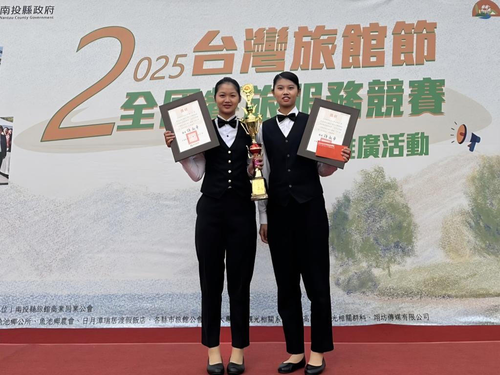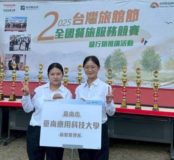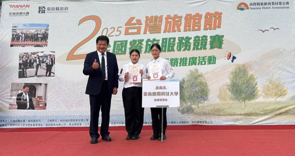 【勁報記者于郁金/臺南報導】2025年「臺灣旅館節全國旅館盃餐旅服務競賽」於近日在日月潭瑞居渡假飯店盛大舉行,全國各大專院校皆派出菁英選手同場競技;台南應用科技大學旅館管理系在此次全國賽事中再創佳績,不僅於大專院校托盤競賽組勇奪冠軍,完成2連霸亮眼成就,更在大專院校整床競賽組中脫穎而出,榮獲全國佳作,展現南應大優質專業訓練成果。