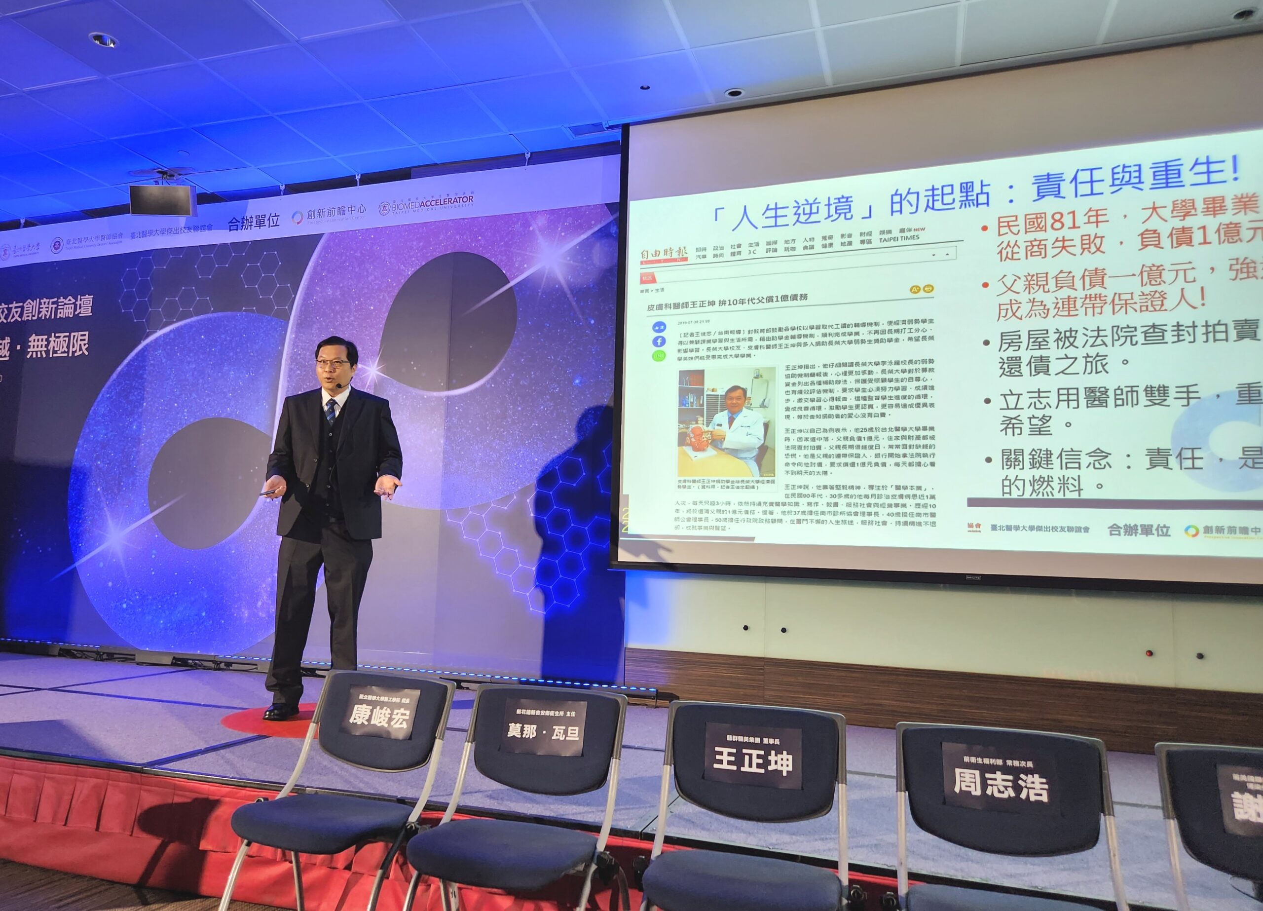 演講最後,王正坤以「善的循環」作結,感性分享自己年輕負債一億元,深刻感受清寒學生的痛苦,因此藝群長年投入公益、捐贈獎學金與支持教育。他說:「逆境,是成就王國的起點;創業不是風險,而是責任。」他的故事深深打動現場觀眾,掌聲歷久不息,許多北醫校友表示,這是一場充滿力量與啟發的演講,見證了北醫人不畏逆境、勇於創新的精神。