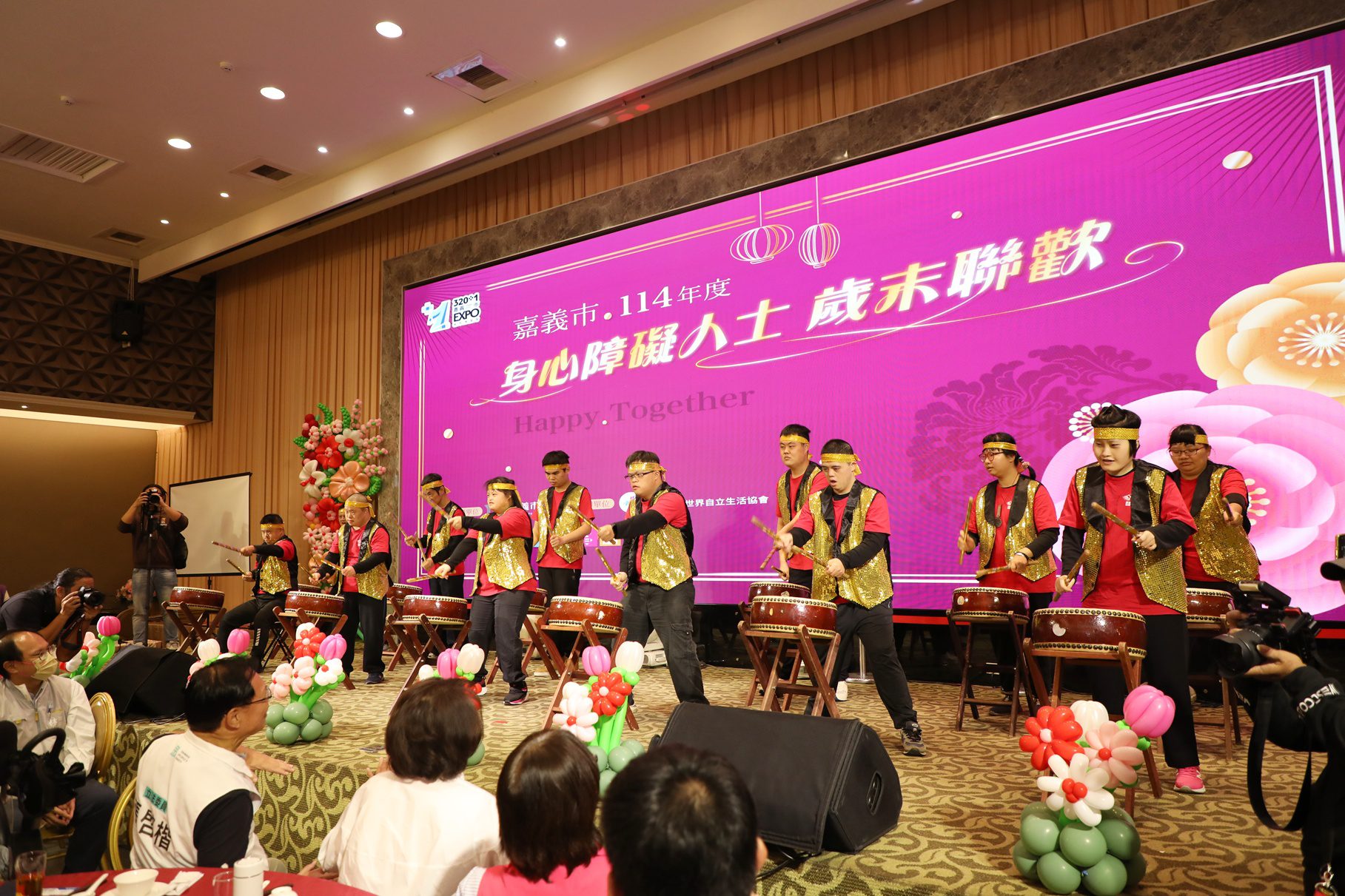 黃敏惠表示,歲末聯歡活動不僅是一場團聚的盛宴,更是展現城市溫暖和包容的重要時刻。嘉義市目前有11 個身心障礙團體及6 家機構,服務約 1萬6,000位身心障礙朋友,占總人口比率6%。明年巿府將投入超過9億7千萬元,在既有身心障礙服務基礎上全面升級,擴大支持網絡、優化資訊可近用、加強交通協助、提升各項社區式服務能量,讓照顧更到位、支持更細腻、選擇更多元,讓嘉義市真正成為每位市民都能自在生活、安心參與的共融城市。