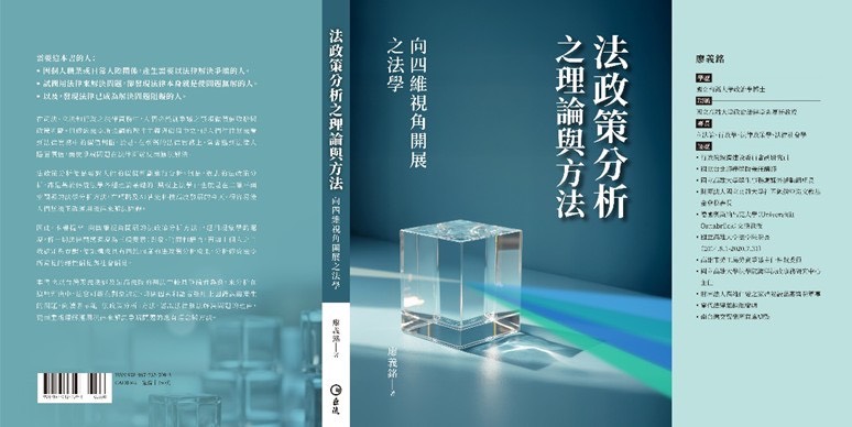 新書《法政策分析之理論與方法》主張,法律不只是條文,更是政策與價值選擇的結果。廖教授希望透過此書帶領讀者理解: