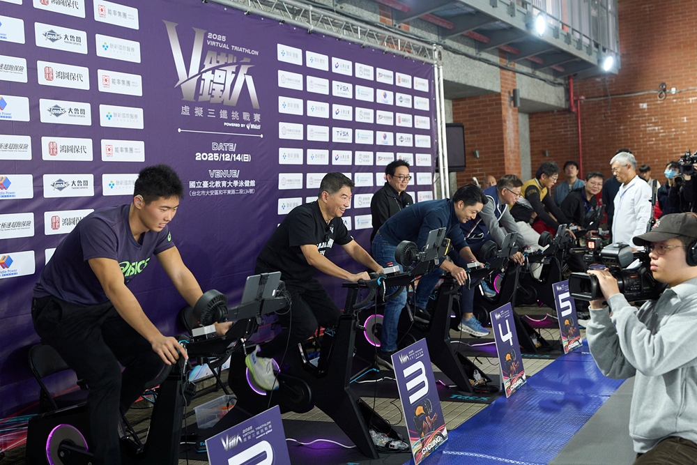 由「台北市虛擬運動協會」主辦,「中華民國虛擬運動總會」聯合主辦的台灣首場虛擬三鐵賽「2025 V鐵人-虛擬三鐵 挑戰賽」12月14日(星期日)在臺北教育大學泳健館盛大舉行。『V鐵人-虛擬三鐵 挑戰賽』結合游泳、單車、跑步的真實運動與虛擬賽道場景,吸引高中組與成人組共48位選手參賽。賽事共分四組舉行,每組皆為短距高強度賽制,包括200公尺游泳、4公里虛擬自行車與1公里虛擬跑步,台北市長 蔣萬安親臨開幕並參與名人表演賽。