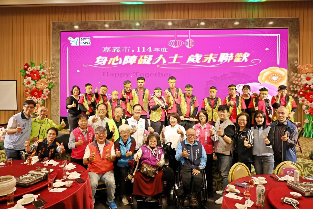 黃敏惠市長表示,歲末聯歡活動不僅是一場團聚的盛宴,更是我們展現城市溫暖和包容的重要時刻。嘉義市目前有11 個身心障礙團體及6 家機構,服務約 1萬6,000位身心障礙朋友,占總人口比率6%。黃敏惠市長強調,嘉義市是「全齡共享 世代宜居」的永續幸福城市,身心障礙朋友是我們要用「心」來看顧的族群。每一位身心障礙朋友都是嘉義市的重要成員,市府致力於落實身心障礙者權益公約(CRPD)「公平參與、機會平等、權益保障」的精神。為實踐這份承諾,明(115)年,巿府將投入超過9億7千萬元,在既有身心障礙服務基礎上全面升級,擴大支持網絡、優化資訊可近用、加強交通協助、提升各項社區式服務能量,讓照顧更到位、支持更細腻、選擇更多元,讓嘉義市真正成為每位市民都能自在生活、安心參與的共融城市。