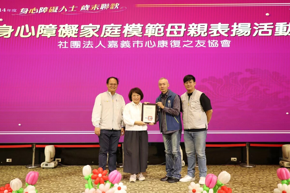 【記者 吳瑞興/嘉義市 報導】嘉義巿黃敏惠市長今(14)日出席由社團法人嘉義市新世界自立生活協會承辦的「身心障礙人士歲末聯歡活動」,與各身心障礙福利團體齊聚一堂,分享成果與精彩表演。市府透過聯歡活動感謝今年度辦理各項活動的身障團體,並表揚身心障礙者個人照顧服務提供單位及5個身心障礙福利服務培力暨高照顧負荷關懷服務計畫評鑑績效優等及甲等績優單位,期待透過各身障團體的服務與宣導,打破社會大眾對身心障礙者的刻板印象,一起攜手支持身心障礙朋友。