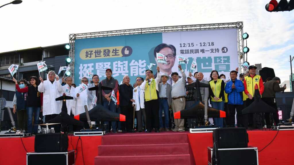 ▲彰化縣長擬參選人林世賢舉辦「彰化勝利團結大會」。(記者林明佑翻攝)身兼「彰化無人載具大聯盟主席」的林世賢強調,他與台灣複材低碳循環聯盟主席、上緯智聯董事長蔡朝陽已多次合作推動產業論壇,證明他有決心、有能力引進新興科技,讓產業在彰化落地生根。