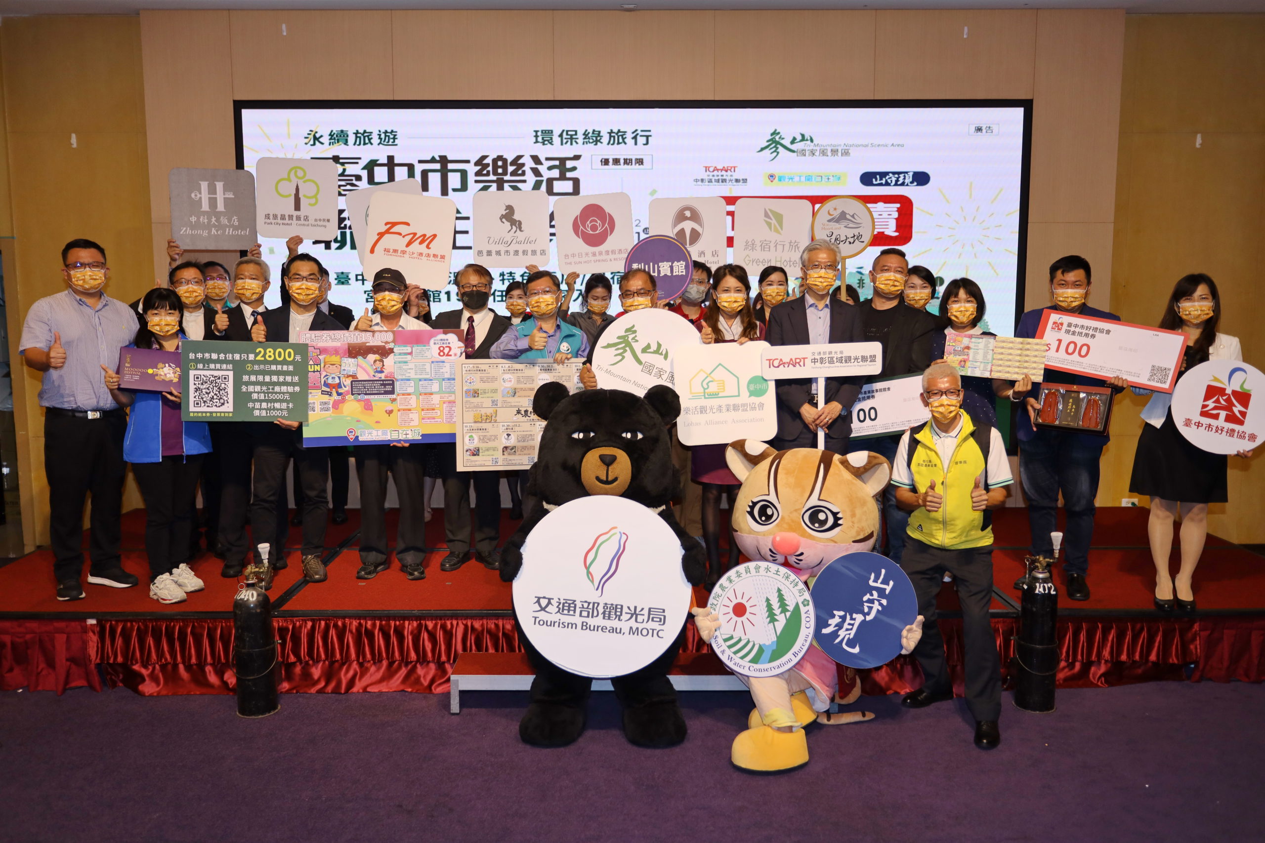 臺中市樂活聯合住宿券剛宣佈正式開售!農委會水保局台中分局副分局長李正鈞、經濟部中部辦公室視察許世燦、工業技術研究院產品經理蔡秀如、中彰區域觀光聯盟總召柴俊林及中彰觀光圈有13個相關觀光產業協會等代表等60餘人,均到場支持及聲明共同加入聯合住宿券行銷專案。