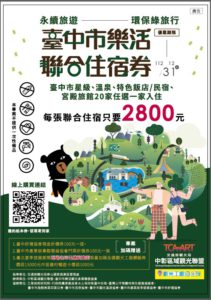 臺中市樂活觀光產業聯盟協會理事長高雅鈴表示,臺中市樂活聯合住宿券即日起到12月31日止,都可以到專屬網站購買,每張只要2800元可入住臺中市19家特色旅宿,住房有精緻雙人房、雅致四人房等多樣房型提供選擇,凡持聯合住宿券入住一律贈送臺中好禮協會及台中市產業故事館發展協會現金折價券100元各一張。